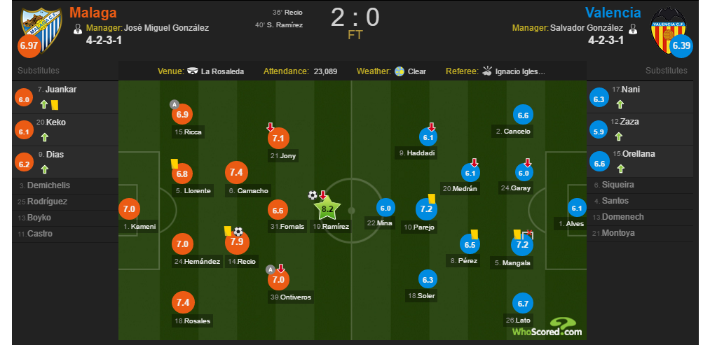 Малага – Валенсия 1:0, Примера 2014-2015