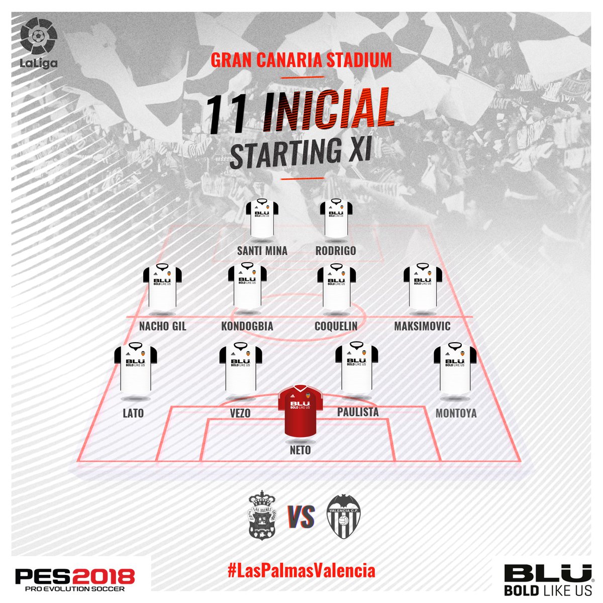 Neto, Jaume, Montoya, Nacho Vidal, Garay, Paulista, Vezo, Lato, Coquelin, Kondogbia, Maksimovic, Andreas, Guedes, Nacho Gil, Vietto, Rodrigo, Zaza y Santi Mina.