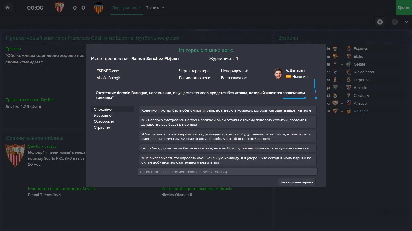 Играю за Валенсию в ПЕСе)) Постоянно. Вот прошлый сезон закончил на втором месте, победив в ЛЕ. В этом иду на месте, хотя состав не изменился, но противники явно стали играть сильнее и нахальней. Ладно, Шмесси и Анальдо не покупаю, но Бернаты, Хумельсы, Отаменди играют.